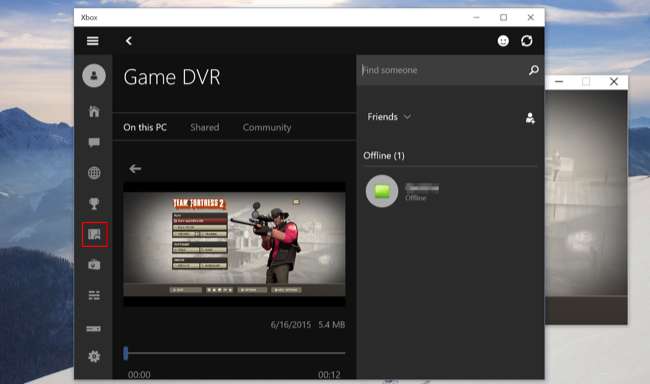 U kunt deze ook openen in de Xbox-app. Open de Xbox-app vanuit je Start-menu en klik op het pictogram "Game DVR" aan de linkerkant van de app om het gedeelte Game DVR te openen. Je ziet een gesorteerde lijst met al je gemaakte screenshots en video's onder 'Op deze pc'. Je kunt ze bekijken en bekijken vanuit de Xbox-app.