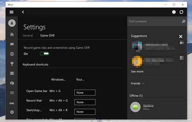 De Game Bar en Game DVR-instellingen worden bediend vanuit de Xbox-app. Open de Xbox-app, klik op het pictogram Instellingen en selecteer Game DVR om ze aan te passen.