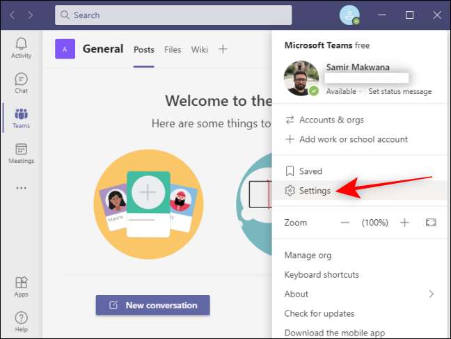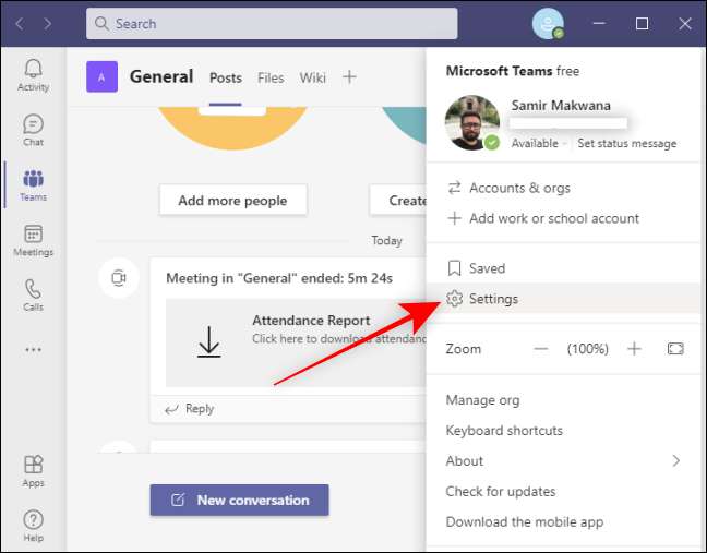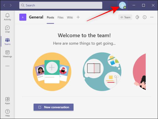 Start de app Microsoft Teams en klik op je profielpictogram in de rechterbovenhoek.
