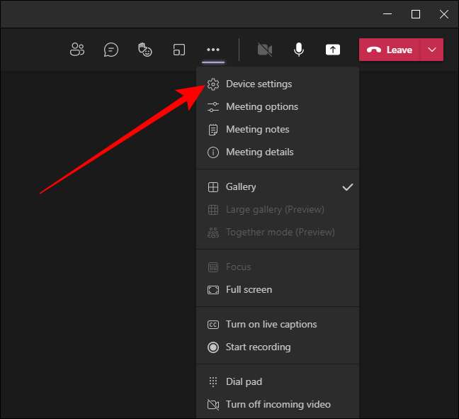 Klik op het menu-pictogram van Three-Dot in de rechterbovenhoek van het vergadervenster en selecteer de optie "Apparaatinstellingen".