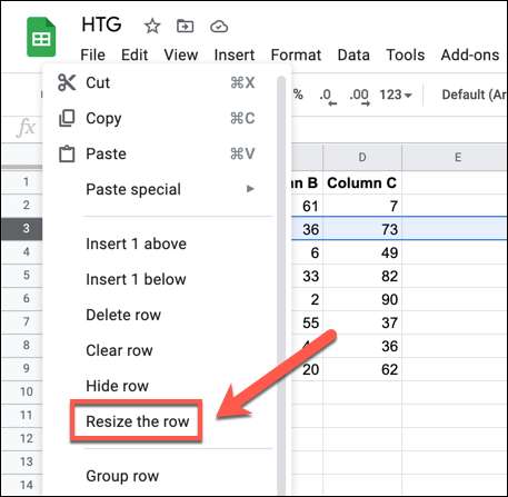 Gebruik van de wijziging van de grootte of rij-tool in Google Sheets