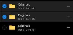 Als u meteen meerdere bestanden en mappen tegelijkeringen wilt selecteren, tikt u het eerste bestand vast en selecteert u vervolgens de andere bestanden die u wilt herstellen door ze te tikken. Een blauw vinkje verschijnt links van geselecteerde bestanden.
