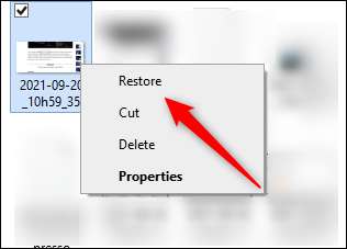 Eenmaal in de Prullenbak, klik met de rechtermuisknop op het bestand of de map die u wilt herstellen en klikt u vervolgens op "HERSTELLEN" in het contextmenu.