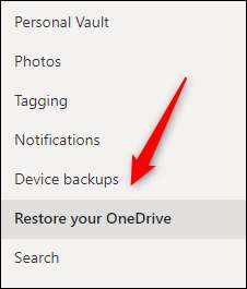 Op het volgende scherm ziet u een nieuwe lijst met opties in het linkerpaneel. Klik hier op de optie "Uw OneDrive Herstellen" aan de onderkant van de lijst.