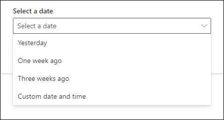 Eenmaal geverifieerd, zit je bij het scherm "Herstel je onedrive". Klik op het vakje onder "Selecteer een datum" en kies vervolgens de tijd die u wilt herstellen van uw onedrive in het vervolgkeuzemenu. Je kunt kiezen tussen gisteren, een week geleden, drie weken geleden, of een aangepaste datum en tijd instellen.