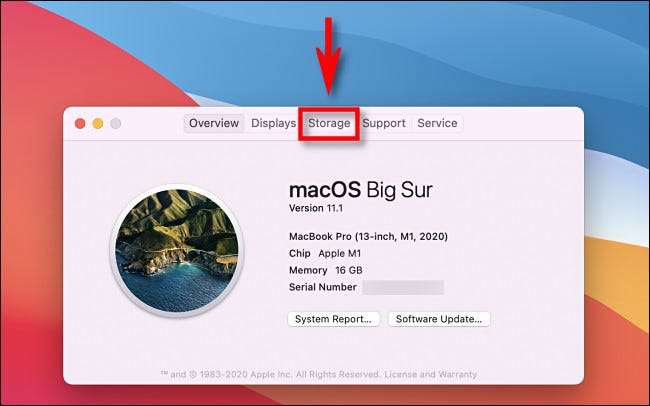 Klik in het venster dat verschijnt op de knop "Opslag". (In sommige eerdere versies van MacOS kan deze knop als een tabblad verschijnen.)