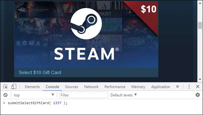 Klep zojuist toegevoegd digitale cadeaubonnen naar Steam, zodat je geld rechtstreeks naar de Steam-portemonnee van een vriend kunt sturen. U kunt ook de dezelfde truc we gebruikten het toevoegen van Steam Wallet-geld om bijna elk bedrag te verzenden - niet alleen de vooraf ingestelde waarden.