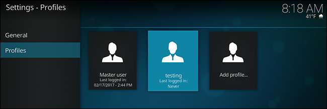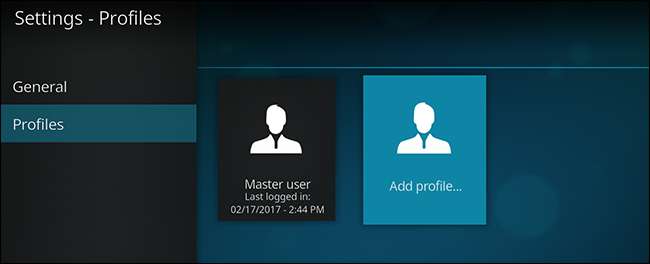 Nu uw profielen zijn ingesteld, vraagt u zich waarschijnlijk af hoe u tussen deze profielen kunt schakelen. Er zijn twee belangrijke manieren. De eenvoudigste is om het inlogscherm voor Kodi in te schakelen; je vindt de optie in het gedeelte Algemeen van het deelvenster Profielen in de instellingen.