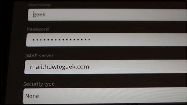 En nu kom je op het scherm dat nergens op slaat. De gebruikersnaam is onjuist, de IMAP-server is onjuist en het beveiligingstype is onjuist.