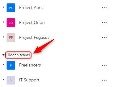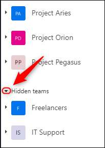 Klik op de pijl naast “Hidden Teams” om de groep te minimaliseren en verberg de verborgen teams uit het zicht.