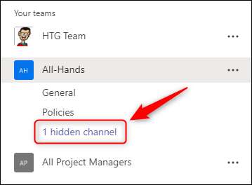 Van nu af aan, zult u niet de teams zien, tenzij u de “Verborgen Teams” openen door op de pijl naast het, en je zal geen meldingen krijgen van de verborgen teams, tenzij u rechtstreeks worden genoemd.