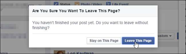 Als je bezig was met het schrijven van een bericht dat je nog niet had gepost, wordt het volgende bericht weergegeven. Klik op "Deze pagina verlaten" om naar de pagina "Instellingen" te gaan. Maak je geen zorgen, je bericht staat er nog steeds als je terugkeert naar deze pagina.