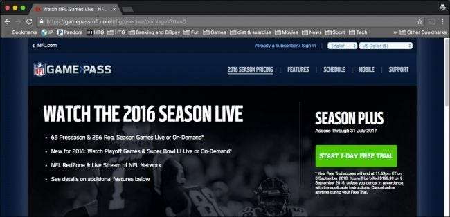 Als je echter een fervent voetbalfan bent, biedt de NFL een abonneeservice aan Game Pass , dat is $ 99,99 in de VS en waarmee je NFL-games kunt streamen.