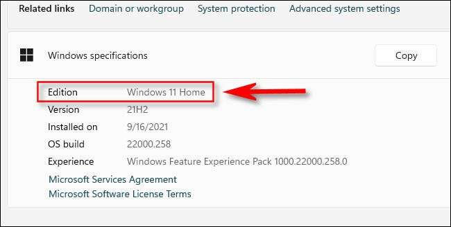 Zoek het gedeelte "Windows-specificaties" op het scherm van het scherm. Naast "Edition", ziet u welke editie van Windows 11 u werkt. Mogelijk ziet u "Windows 11 Home" of "Windows 11 Pro", bijvoorbeeld, afhankelijk van welke editie die u loopt.