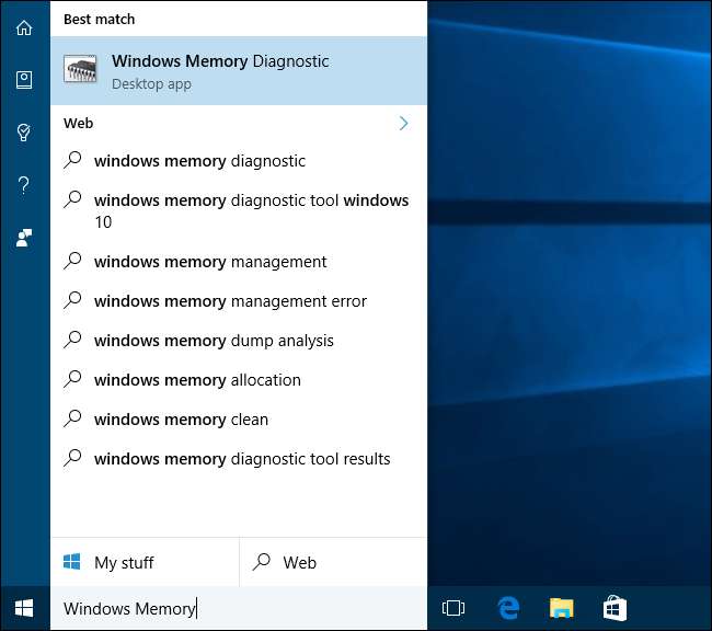 Om het hulpprogramma Windows Memory Diagnostic te starten, opent u het menu Start, typt u "Windows Memory Diagnostic" en drukt u op Enter.
