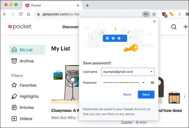Telkens wanneer u zich aanmeldt bij een nieuwe website, wordt de webbrowser automatisch een pop-upbericht geladen waarin u vraagt of u de gebruikersnaam en het wachtwoord wilt opslaan in Chrome. Daarbij zullen uw gebruikersnaam en wachtwoord zijn gesynchroniseerd tussen apparaten die zijn gekoppeld aan uw Google-account.