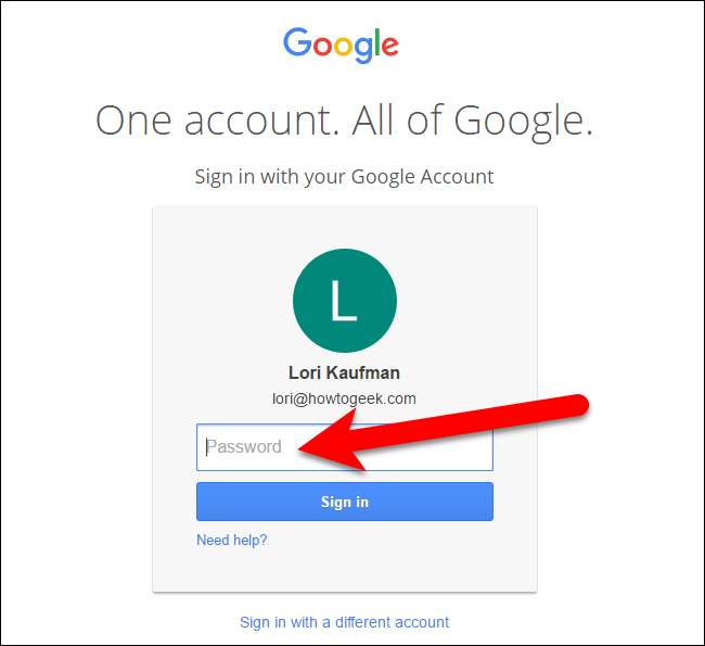 Voer uw wachtwoord voor uw Google-account in en druk op Enter of klik op "Aanmelden".
