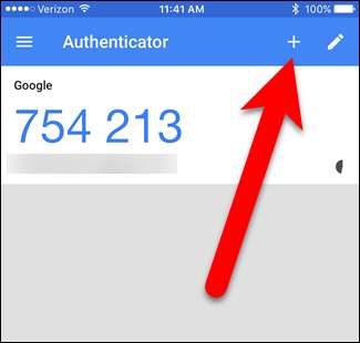 Tik op het hoofdscherm van Authenticator bovenaan op het plusteken.