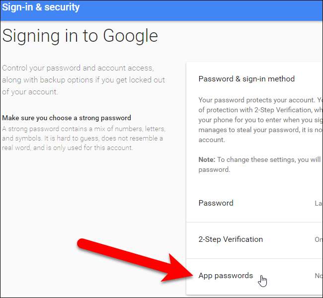 Terug op de Aanmeldings- en beveiligingsscherm , klik op 'App-wachtwoorden' onder Wachtwoord en aanmeldingsmethode.