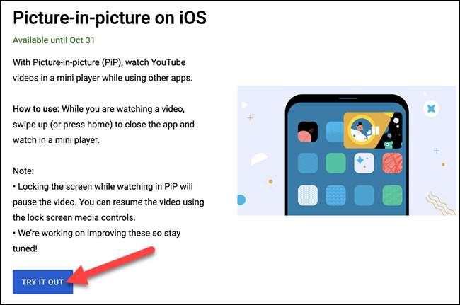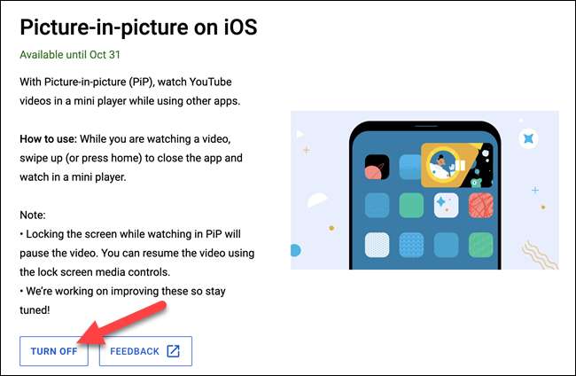 Als een "experimentele" functie, heeft Picture-in-Picture voor YouTube op de iPhone een vervaldatum. Na 31 oktober 2021 zal PIP voor iOS weggaan of een stabiele kenmerken worden - de laatste is het meest waarschijnlijke uitkomst. ( 9to5Google merkt op dat sommige mensen het ook in de iPad werken.)
