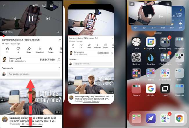 Daarna is het enige wat er nog te doen is het uitproberen. Om de YouTube-video in de zwevende "Mini-Player" in te zetten, veegt u gewoon op of drukt u op de startknop om naar het startscherm van de iPhone te gaan.