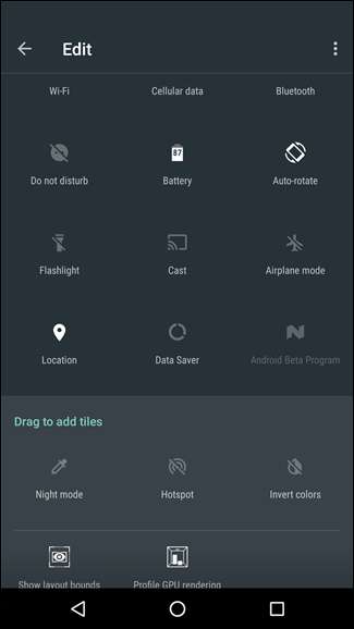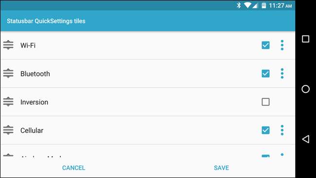 Android 7.0 Nougat heeft eindelijk de mogelijkheid toegevoegd om dit menu aan te passen, hoewel het beschikbaar was in 6.0 Marshmallow vanuit een verborgen menu genaamd "System UI Tuner". Als je geworteld U kunt echter nog meer opties krijgen op elke versie van Android, Marshmallow of anderszins.
