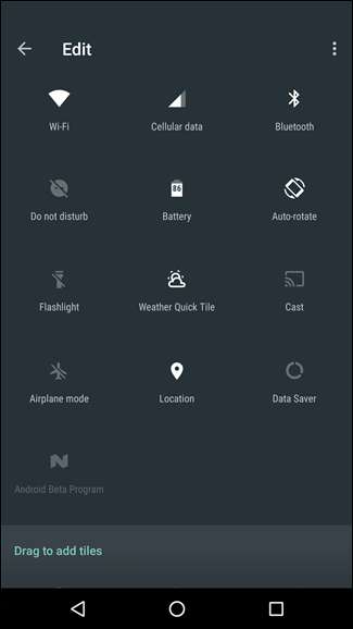 Nu de app is geïnstalleerd, ga je gang en spring je terug naar het menu Snelle instellingen bewerken. Een nieuwe optie genaamd "Weather Quick Tile" zou beschikbaar moeten zijn. Voeg dat gewoon toe. Ja, het is echt zo simpel.