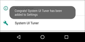 Na ongeveer vijf seconden vasthouden, zou het moeten beginnen te draaien. Een melding met de tekst "Gefeliciteerd! System UI Tuner is toegevoegd aan Instellingen. "