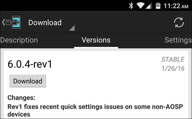 Veeg naar het tabblad "Versies" en download de nieuwste versie van GravityBox voor uw telefoon.