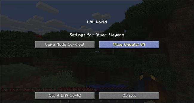 Als je gewoon de moeilijkheidsgraad wilt veranderen en het maakt je niet uit of je hem daadwerkelijk ontgrendelt, is er een kleine truc die afhankelijk is van het openen van je game voor spelen op het lokale LAN. Het maakt niet uit of je niet echt met iemand anders speelt (of dat er zelfs een andere computer op je netwerk is). Wanneer je een game opent voor spelen via LAN, krijg je de mogelijkheid om beide de gamemodus te wijzigen (bijvoorbeeld Survival in Creative) en de mogelijkheid om cheats aan en uit te zetten.