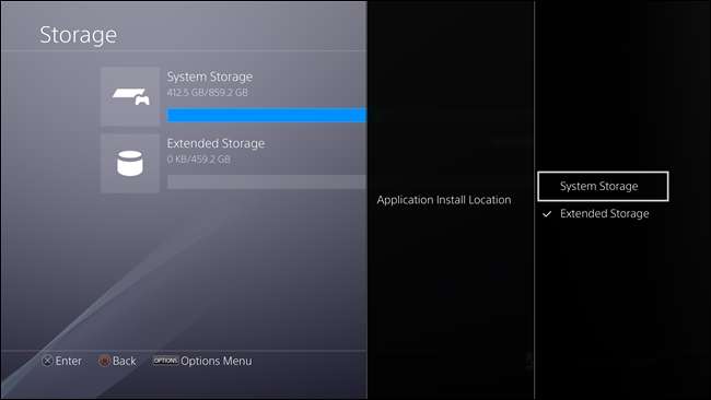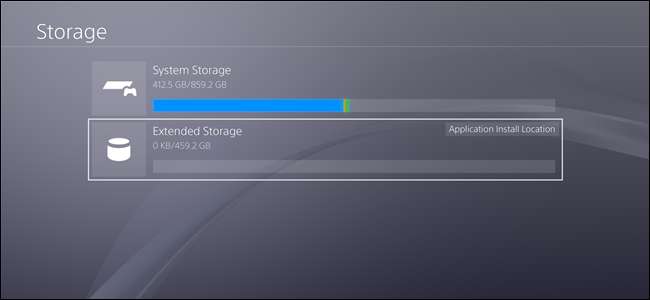 Beide schijven zouden hier moeten verschijnen, aangeduid als Systeemopslag en Uitgebreide opslag, waarbij de laatste uw nieuw toegevoegde USB-schijf is.