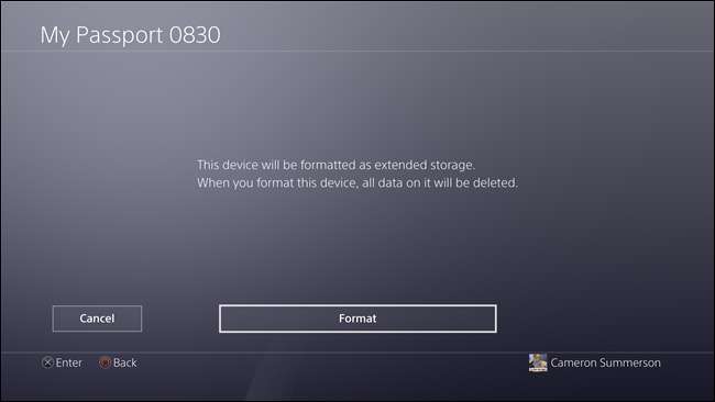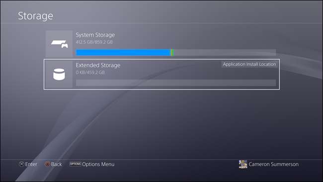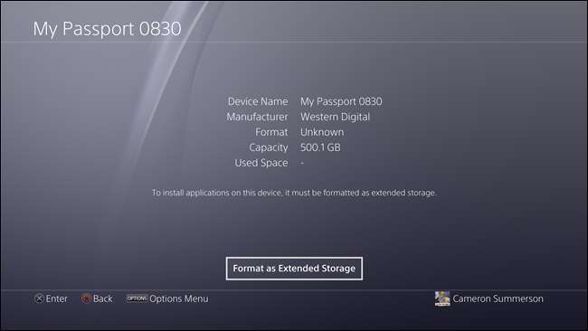 Met dat in gedachten en rij in de hand, ga je gang en sluit je die slechte jongen aan op je PlayStation. Ik gebruik hier een PS4 Pro, dus mijn drive is aangesloten op de USB-poort aan de achterkant van het apparaat, maar het maakt echt niet uit welke kant je ermee op gaat.