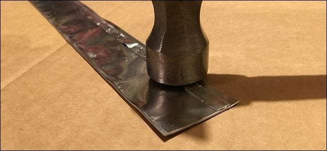 Zoals hierboven vermeld, maakt u het aluminium met een hamer plat tot een strip - het zou niet veel moeite moeten kosten en u kunt zelfs uw handen gebruiken om veel van het buigen te doen.