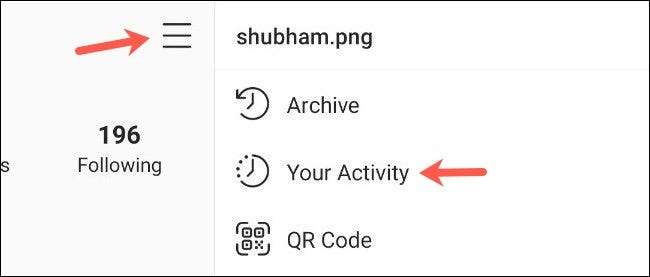 Tik op het menu-pictogram van drie regel in de rechterbovenhoek en selecteer vervolgens "Uw activiteit".
