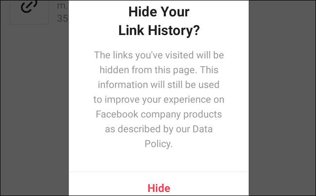 Opmerking: De link verbergen is de informatie van de link niet af of wist u uw geschiedenis van Instagram-servers. Het zal het alleen uit je profiel verbergen. Facebook kan het blijven gebruiken voor Uw advertenties personaliseren op zijn groep sociale apps.