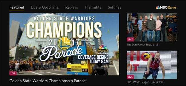 Ten slotte zou elk alternatief voor een streamingkabel waarmee u naar uw lokale NBC-partner kunt kijken, u ook in staat moeten stellen om de Super Bowl op hetzelfde kanaal te bekijken. Dus diensten zoals Sling TV, YouTube TV, Hulu met Live TV, DirecTV NOW en PlayStation Vue zullen allemaal het spel op je tv of je computer kunnen laten zien, zolang je NBC op een ander moment kunt kijken. Dit geldt ook als je een conventionele kabel-tv-opstelling hebt die ook een streaming-app biedt.