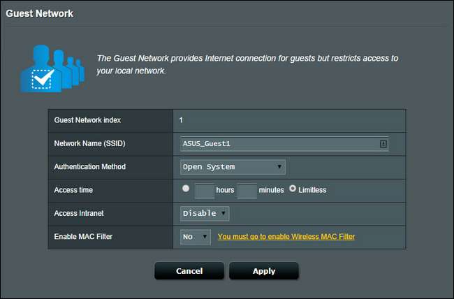 Gastnetwerken: Nu de meeste mid-range tot high-end routers over meerdere wifi-radio's en antennes beschikken, is het niet ongebruikelijk routers te vinden met een "gastnetwerk" -functie. De RT-AC87U heeft niet alleen een gastnetwerk dat het kan implementeren zes gastnetwerken. Nu ben je misschien klaar om te vragen: "Waarom zou ik in vredesnaam zes gastnetwerken nodig hebben?", Vooral als je de gedachte kadert in de context van het meer praktische gebruik van gastnetwerken: je wifi delen met huisgasten.