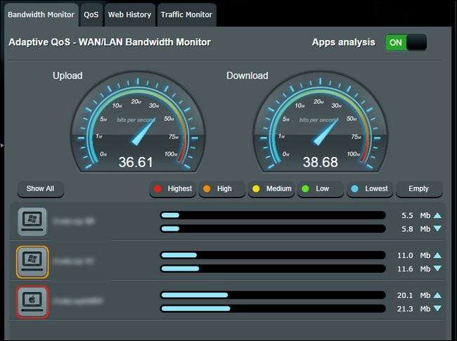 Adaptieve QoS: Quality of Service-beperkingen / traffic shaping is niets nieuws in de thuisroutermarkt, maar net als sommige van de andere functies die we al hebben besproken, gaat de RT-AC87U boven en buiten op deze afdeling.