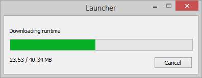 Bij de eerste keer uitvoeren, en bij alle volgende uitvoeringen waarbij een Java-update wordt gedetecteerd, ziet u de bovenstaande downloadindicator kort verschijnen. De looptijd in kwestie is, je raadt het al, de meest up-to-date en voor het systeem geschikte looptijd voor je machine.