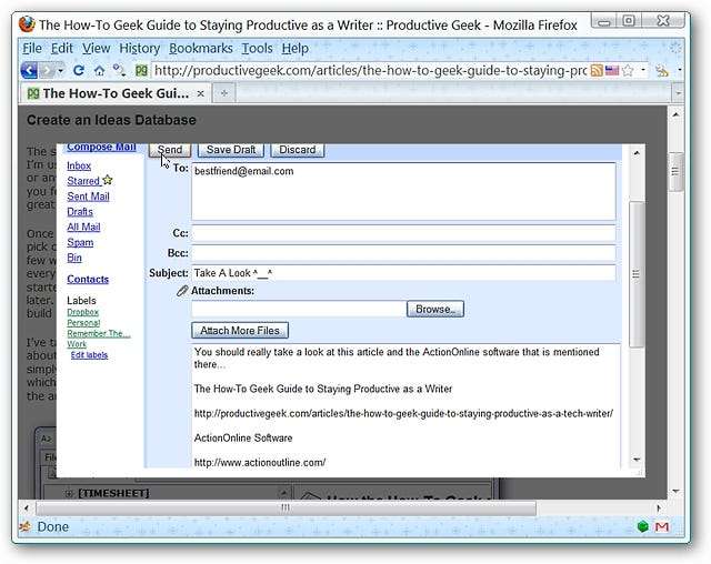 Voor ons voorbeeld hebben we besloten om een e-mail te sturen over een artikel en een van de software-items die erin worden genoemd ...