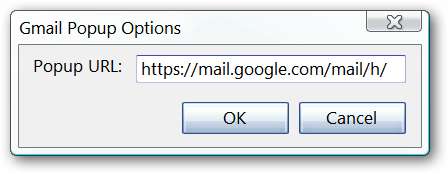 Er is maar één optie voor de extensie… de mogelijkheid om de "Popup URL" te wijzigen.