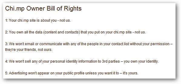 Chi.mp is heel duidelijk in wat uw rechten zijn en wat u van hen kunt verwachten. Merk op dat uw persoonlijke gegevens, informatie en contacten met respect worden behandeld. Een andere leuke functie is dat u niet gedwongen wordt om advertenties op uw site te plaatsen, tenzij u dit specifiek wenst ( dat is heel mooi! ).