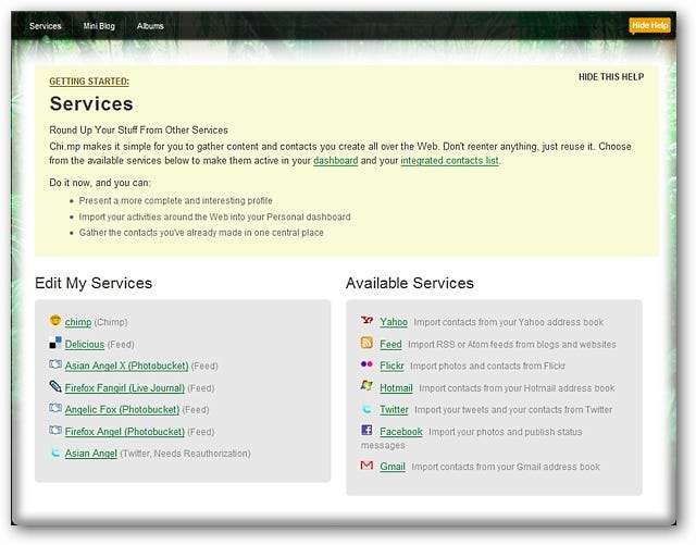 Met Chi.mp kun je de feeds van al je favoriete sociale diensten samenvoegen tot een enkele stream op de hoofdpagina. Nieuwe feeds toevoegen is heel eenvoudig. Let op de "Add a Feed" -optie aan de rechterkant ... je zult misschien verrast zijn door wat je daadwerkelijk kunt toevoegen ( erg fijn! ).