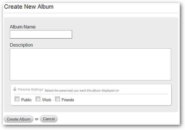 Wilt u een nieuw fotoalbum maken? Dit is wat u zult zien wanneer u er een maakt. U kunt eenvoudig de profielen selecteren waarvoor blogposts en fotoalbums kunnen worden bekeken / beschikbaar.