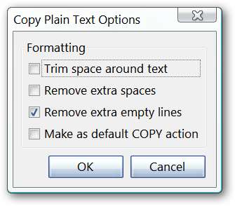 De opties voor het kopiëren van platte tekst zijn gemakkelijk te sorteren ... schakel gewoon functies in of uit om aan uw behoeften te voldoen. Merk op dat er een optie is om dit de "standaard kopieeractie" te maken.