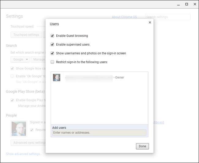 Hier kunt u kiezen hoeveel (of weinig) u het apparaat wilt beperken voor andere gebruikers, tot en met het blokkeren van iedereen die u niet bent. Het is uw Chromebook, u kunt er egoïstisch mee zijn!