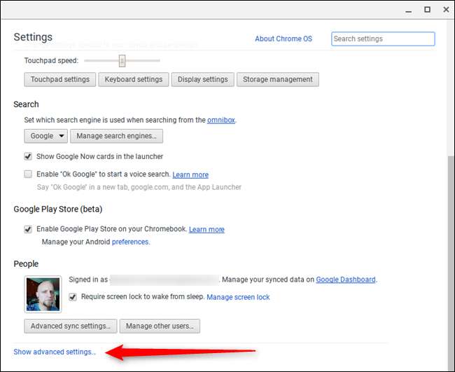 Om een printer aan uw Chromebook toe te voegen, gaat u naar het menu Instellingen en scrolt u omlaag totdat u 'Geavanceerde instellingen weergeven' ziet. Klik daarop.