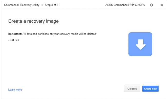 Nadat u uw model heeft geselecteerd, plaatst u een flashstation of SD-kaart in de pc terwijl het hulpprogramma wordt uitgevoerd en selecteert u deze in het vervolgkeuzemenu. Een laatste waarschuwing zal u laten weten dat alle gegevens op de schijf zullen worden gewist - klik gewoon op "Nu maken" om verder te gaan.