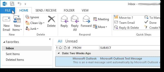 Eerst moet u de instelling in Outlook inschakelen waarmee het RSS-feeds van de Common Feed List kan ophalen. Open hiervoor Outlook en klik op het tabblad FILE.