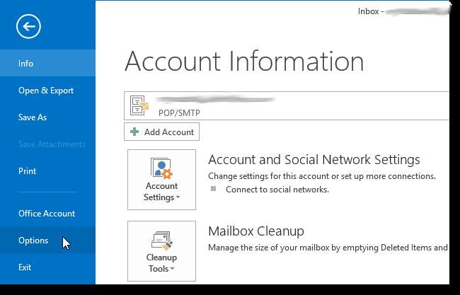 Selecteer Opties in het menu aan de linkerkant.